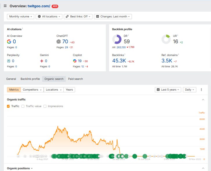 Глянул органический трафик — сразу ясно, что в прошлом там творилась какая-то дичь.